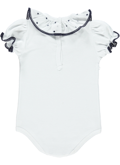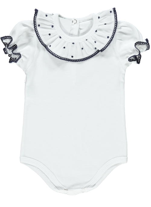 BODY 8,00 € Desconto de %. IVA incluído. Partilhar Tamanho 1m 6m Comprar Contactar Tecido - Malha algodão Cor - Branco Aplicação - folho com polka dot's bordados em azul marinho
