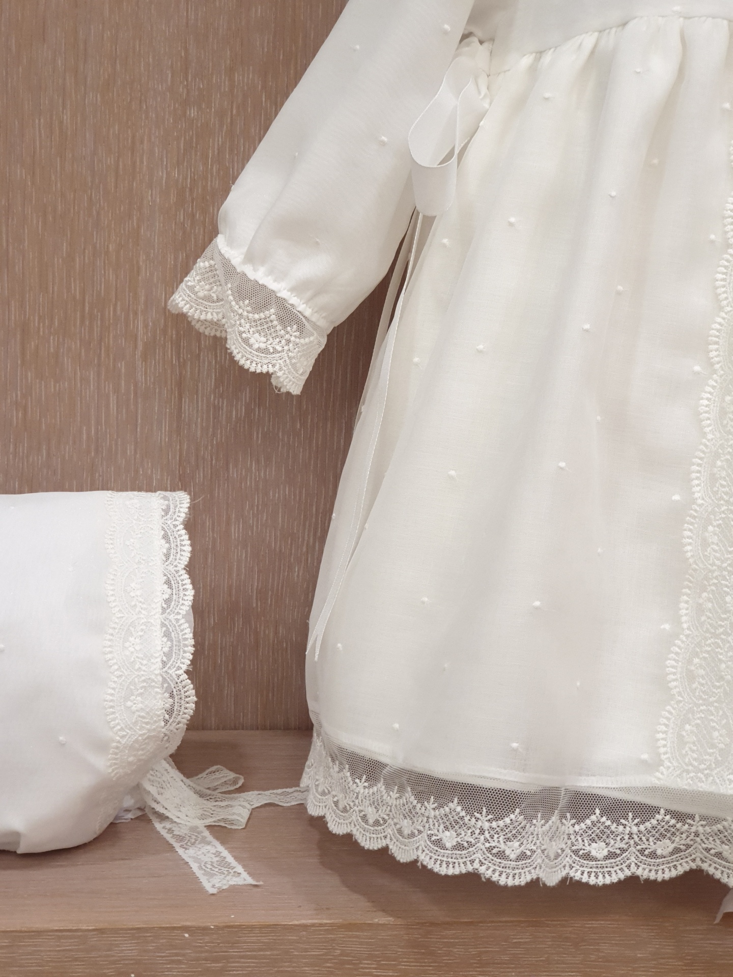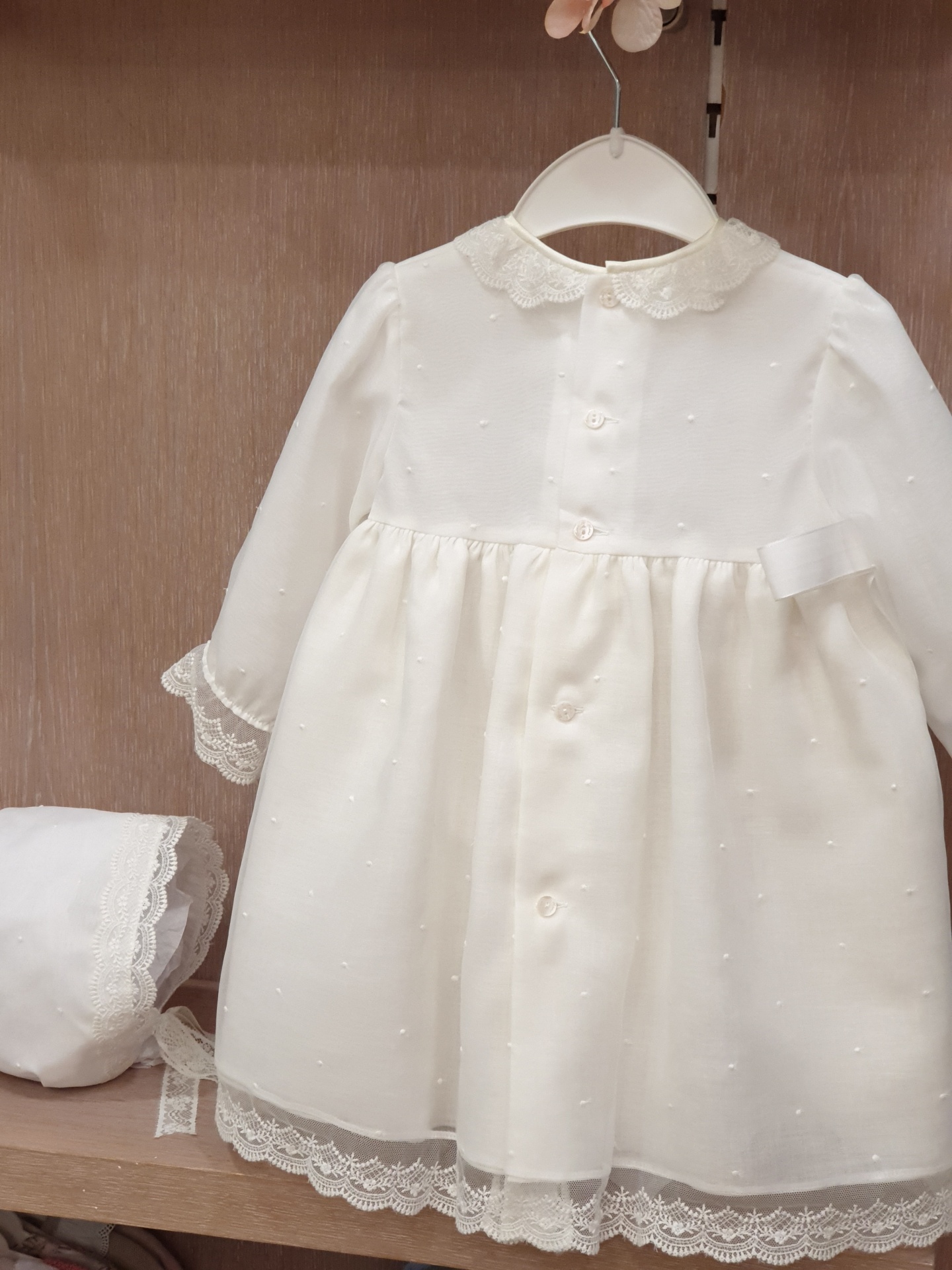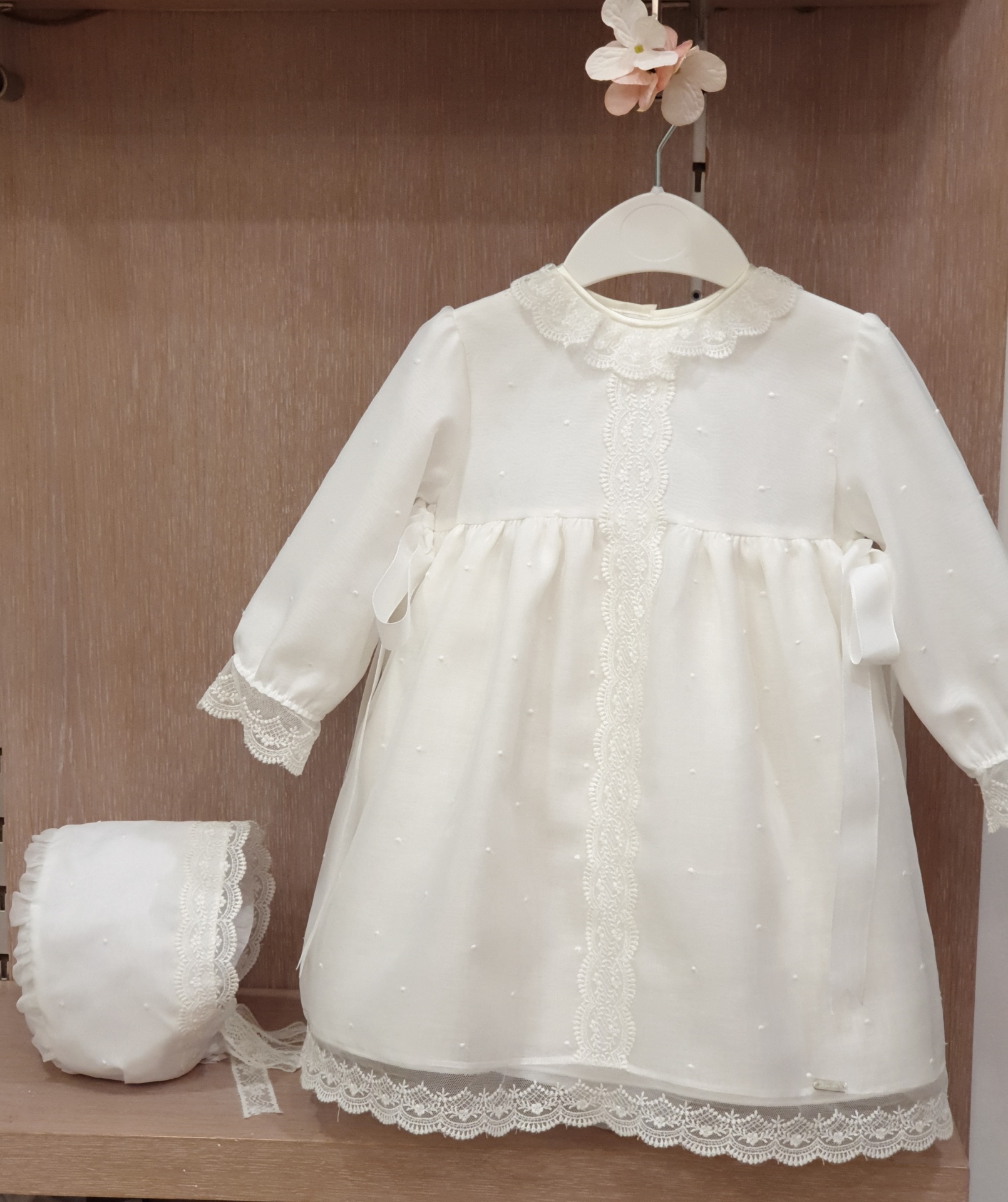 CONJUNTO CERIMÓNIA 145,50 € Desconto de %. IVA incluído. Partilhar TAMANHO 18m 2A 3A Comprar Contactar CONJUNTO CERIMÓNIA (INCLUI 3 PEÇAS - VESTIDO + TAPA FRALDAS + TOUCA) COLOR - IVORY COMPOSITION - 100% POLYESTER Fully lined article.