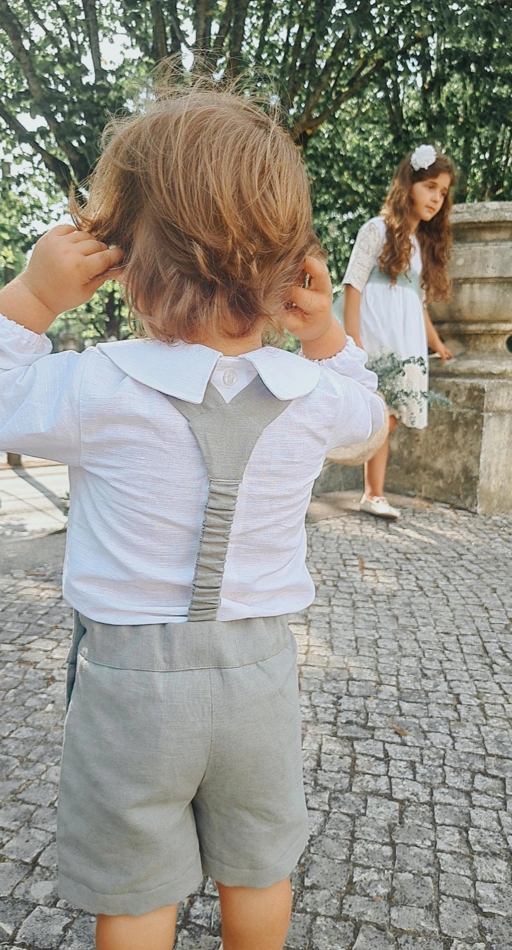 CONJUNTO CERIMÓNIA 75,00 € Desconto de %. IVA incluído. Partilhar Tamanho 3m 6m 12m 18m 2Y 3A 4A Comprar Contactar SHIRT - WHITE LINEN SHORTS - Olive Green linen Runs the real age