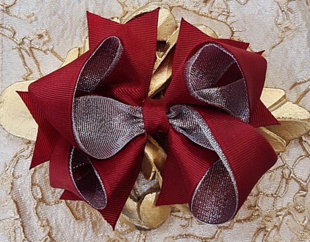 HAIR BOW 10,25 € Desconto de %. IVA incluído. Partilhar HAIR BOW HAIR BOW Comprar Contactar Grosgrain Clip Bow COLOUR - Burgundy with Silver lurex Dimension - 12cm x 9cm