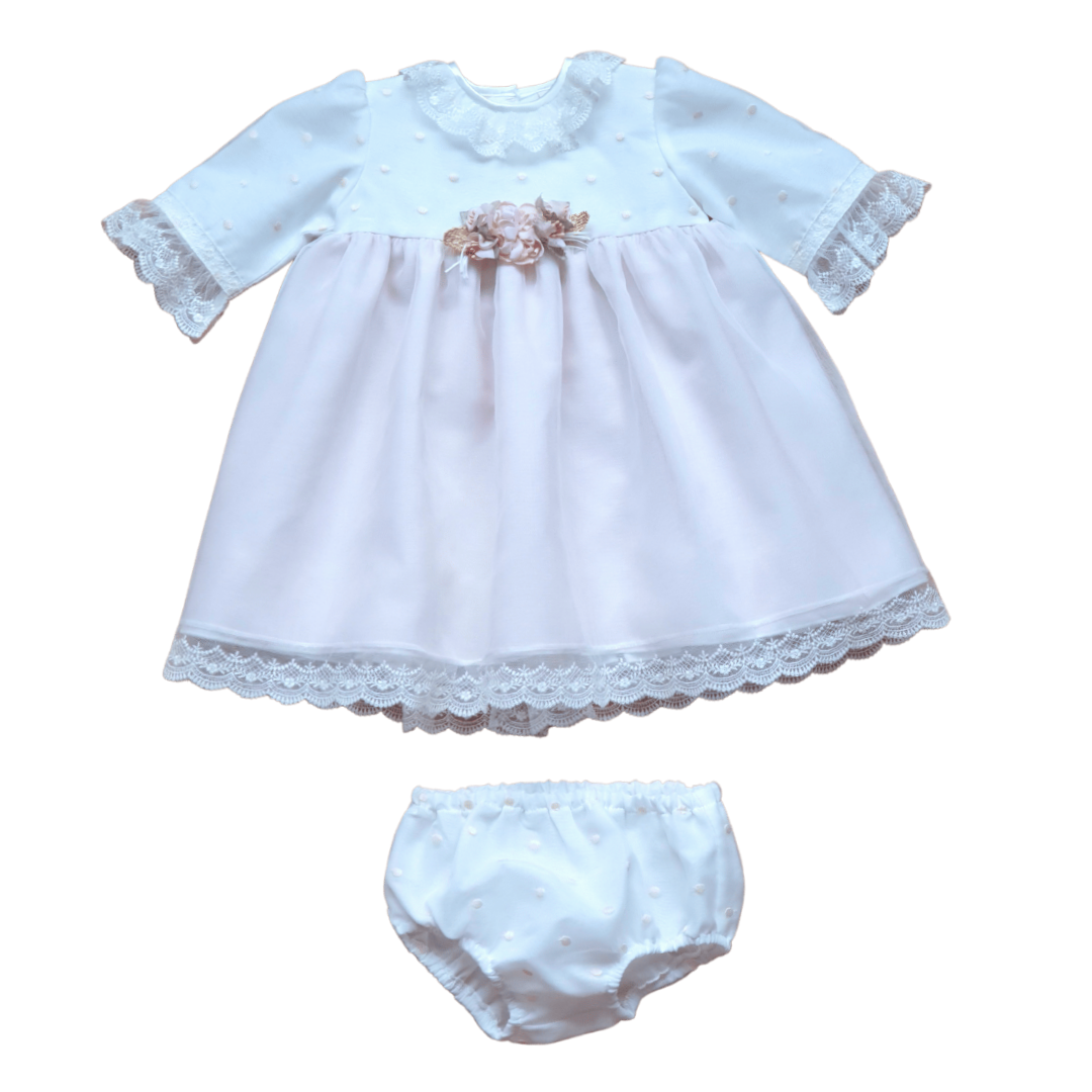 CONJUNTO CERIMÓNIA 142,00 € Desconto de %. IVA incluído. Partilhar Tamanho 6m 9m 12m 18m 2A 3A Comprar Contactar CONJUNTO CERIMÓNIA (3 PIECES INCLUDED - CAP + BLOOMER + DRESS) COLOR - IVORY ON CHEST AND NUDE PINK ON SKIRT COMPOSITION - 100% POLYESTER Fully lined article.